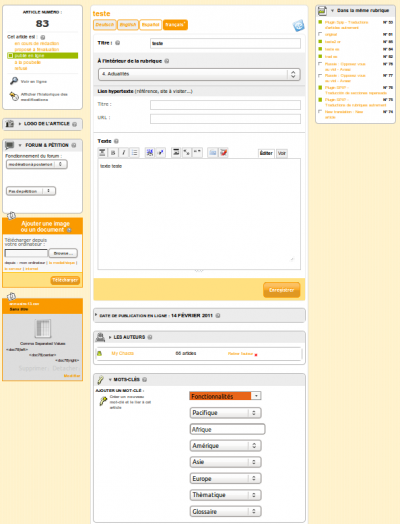 Alle Manipulationen des Artikels (Änderungen, Schlüsselwörter, Autoren,...) können auf einer einzigen Seite erfolgen.