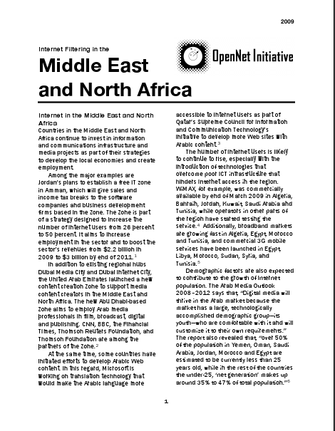 ONI conducted tests for technical Internet filtering in all of the countries in the Middle East and North Africa between 2008 and 2009. Test results prove that the governments and Internet service providers (ISPs) censor content deemed politically sensitive; critical of governments, leaders or ruling families; morally offensive; or in violation of public ethics and order.