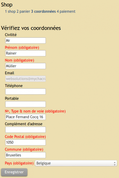 Gestion de clients Inscription en ligne Les données peuvent être modifiées par le client Gestion d’adresses multiples (livraison, facturation)