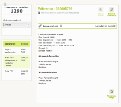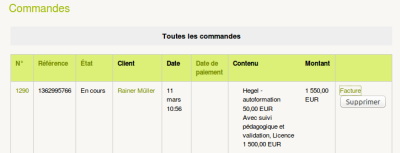 Gestion de commandes Le formulaire de commande Les commandes peuvent ensuite être gérées par les administrateurs du site Le détail de la commande