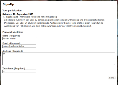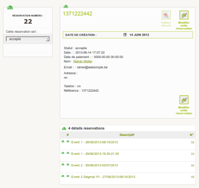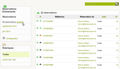 Dans l’espace privé le webmestre peut consulter les réservations et en exporter une liste.